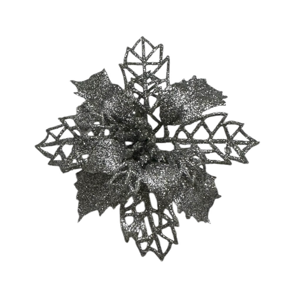 Božićni cvijet 10cm srebrni