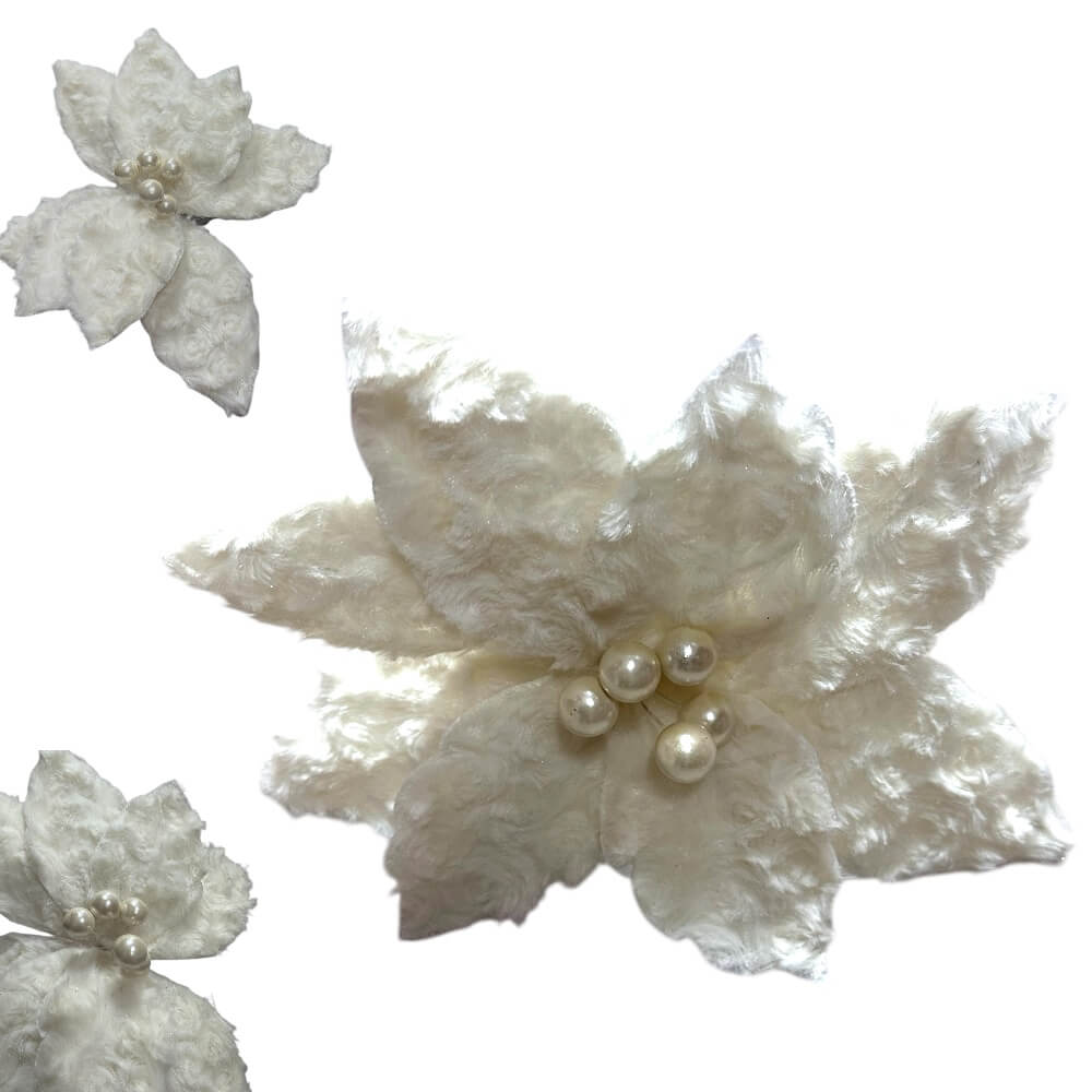 Božićni cvijet izrađen od bogate, kvalitetne tkanine donosi elegantan, zimski i visokokvalitetan izgled svakom aranžmanu. Zahvaljujući svojoj bež, zlatnoj, srebrnoj ili klasičnoj božićnoj boji, ovaj ukras savršeno se uklapa u najrazličitije blagdanske stilove — od modernog do rustikalnog.