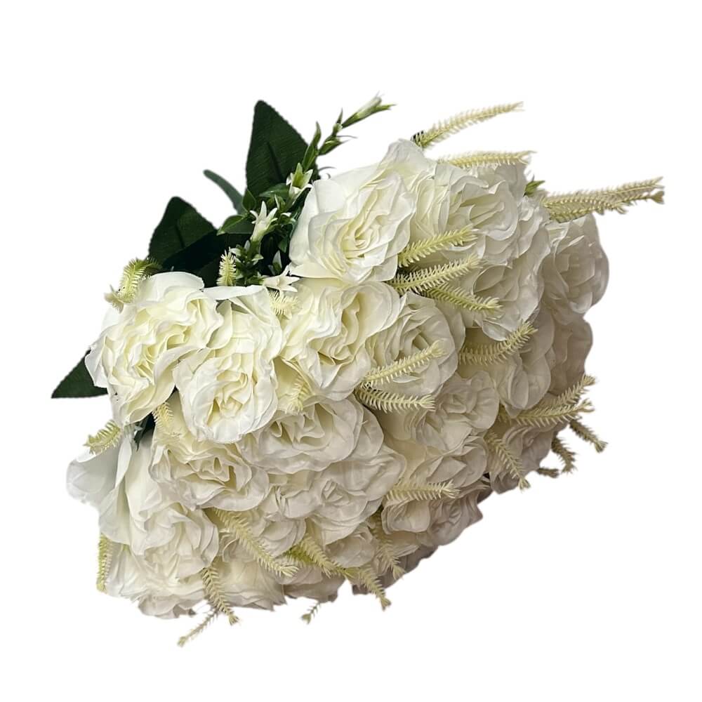 Svaka ruža u ovom buketu oblikovana je kako bi vjerno dočarala nježnost i puninu latica pravih ruža. Cvjetovi dolaze u realističnim, živim bojama, dok su listovi i stabljike izrađeni od kvalitetnog PVC materijala koji osigurava dugotrajnost, otpornost na UV zrake i bezbrižno korištenje u zatvorenom i otvorenom prostoru.