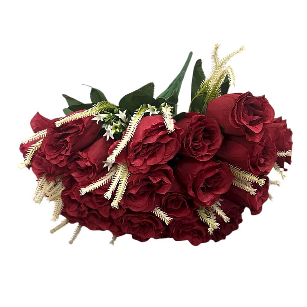 Svaka ruža u ovom buketu oblikovana je kako bi vjerno dočarala nježnost i puninu latica pravih ruža. Cvjetovi dolaze u realističnim, živim bojama, dok su listovi i stabljike izrađeni od kvalitetnog PVC materijala koji osigurava dugotrajnost, otpornost na UV zrake i bezbrižno korištenje u zatvorenom i otvorenom prostoru.
