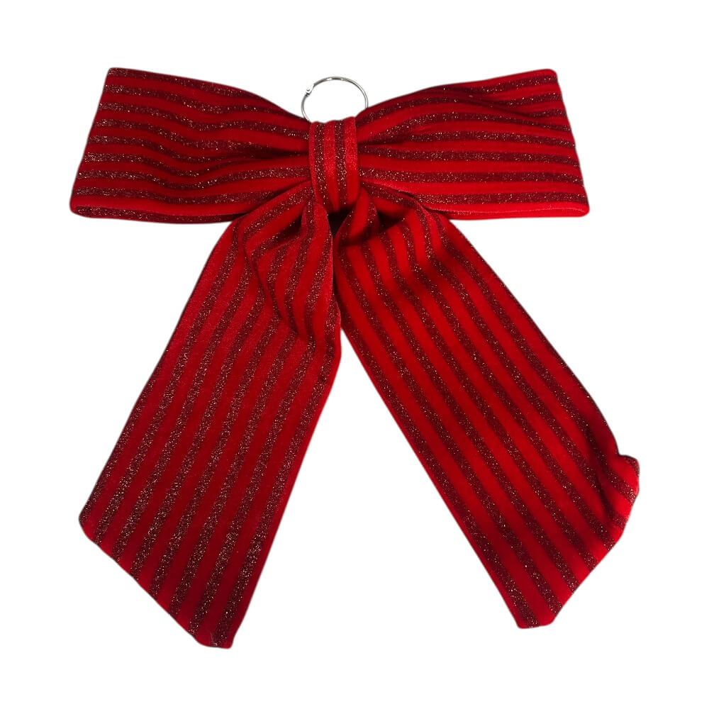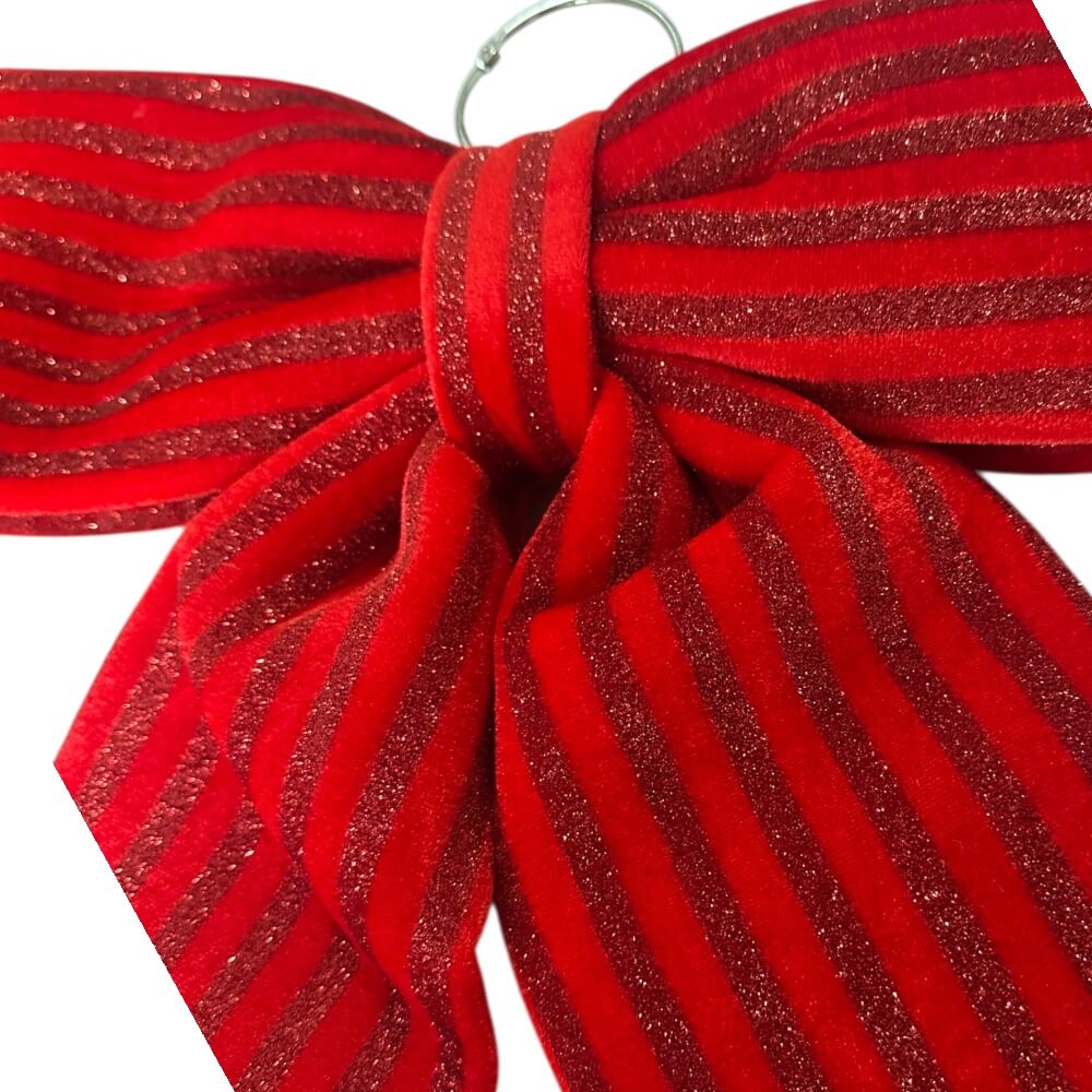 Mašna pliš luksuzna je božićna dekoracija koja unosi toplinu i eleganciju u svaki prostor. Izrađena od crvenog pliša baršunaste teksture i ukrašena zlatnom trakicom, ova velika božićna mašna idealna je za vrh bora, ali i kao dekoracija na vratima, stolovima, vijenacima ili drugim sezonskim aranžmanima.