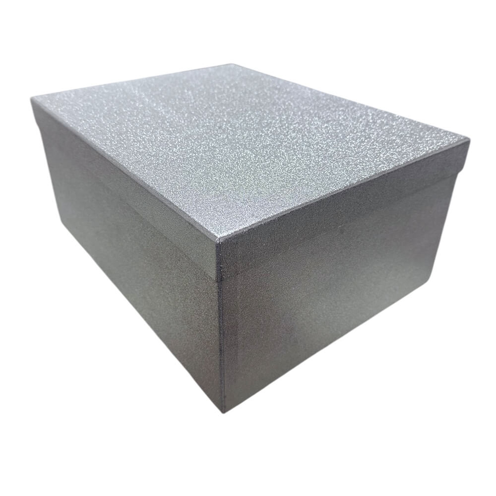 Poklon kutija 19x13x7,5cm srebrna sa šljokicama