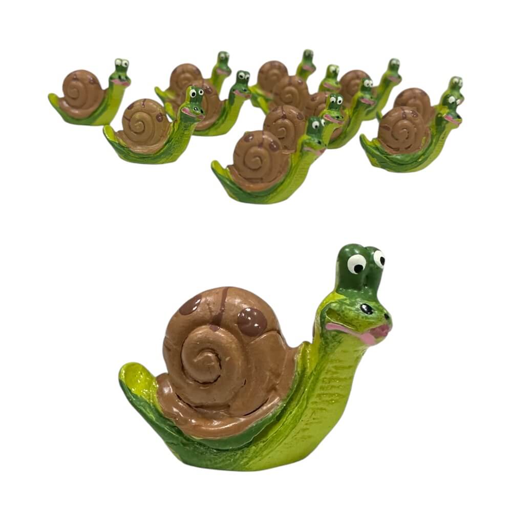 Mala keramička figurica puža također je pogodna za korištenje u tematskim aranžmanima ili mini vrtovima, gdje se može kombinirati s mahovinom, kamenčićima, cvijećem ili drugim dekorativnim elementima. Takvi aranžmani idealni su za uređenje doma, dječjih soba ili čak školskih učionica.