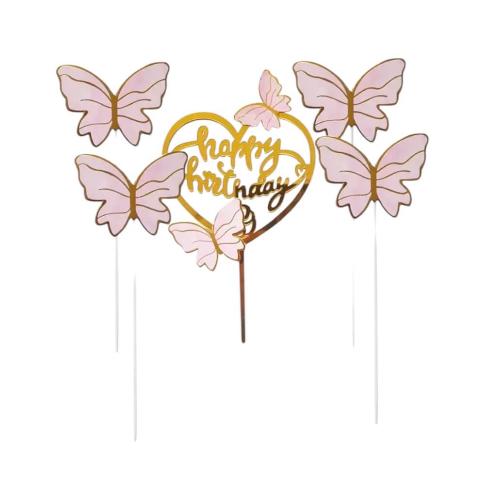 Toper za tortu Happy Birthday s leptirićima – elegantna dekoracija za posebne trenutke