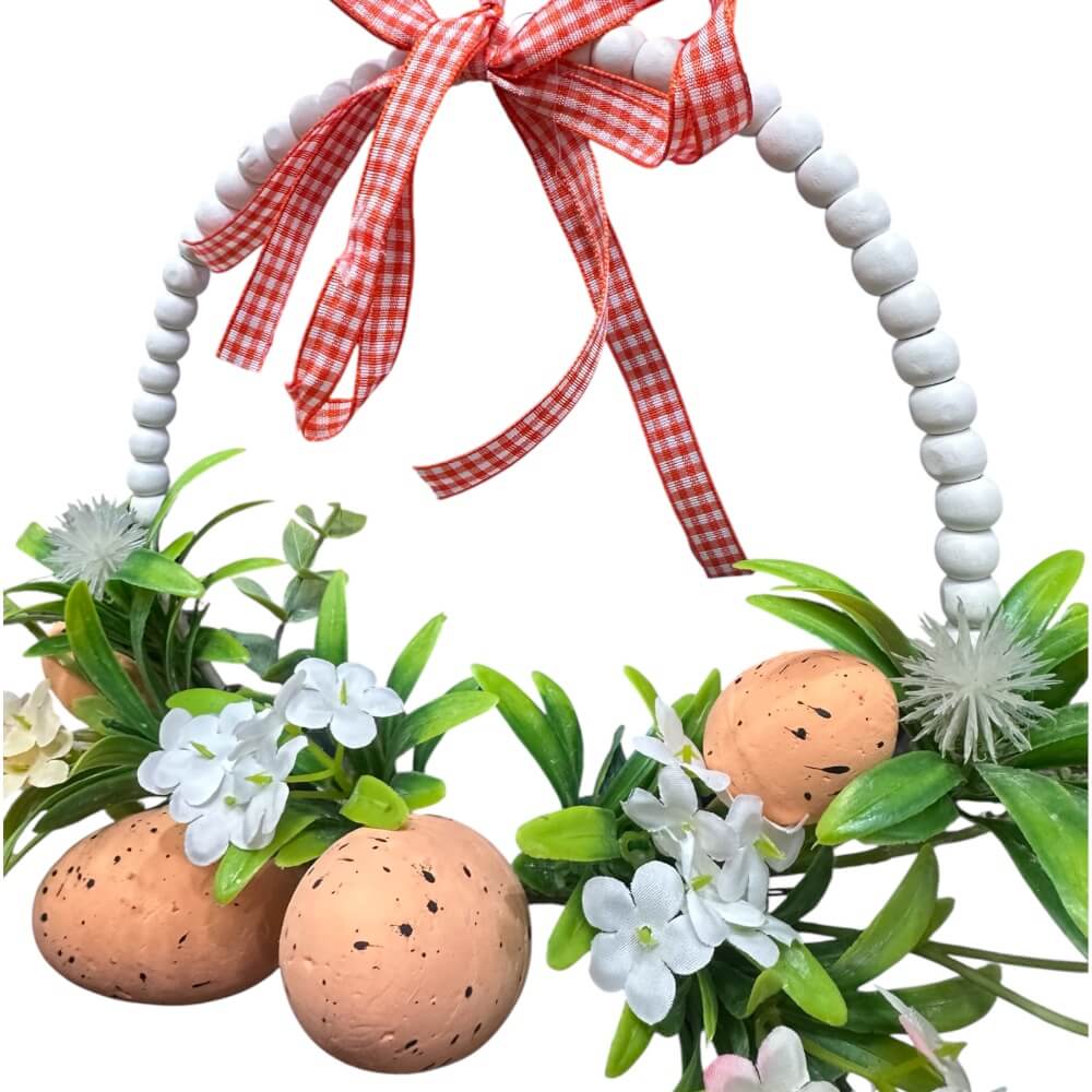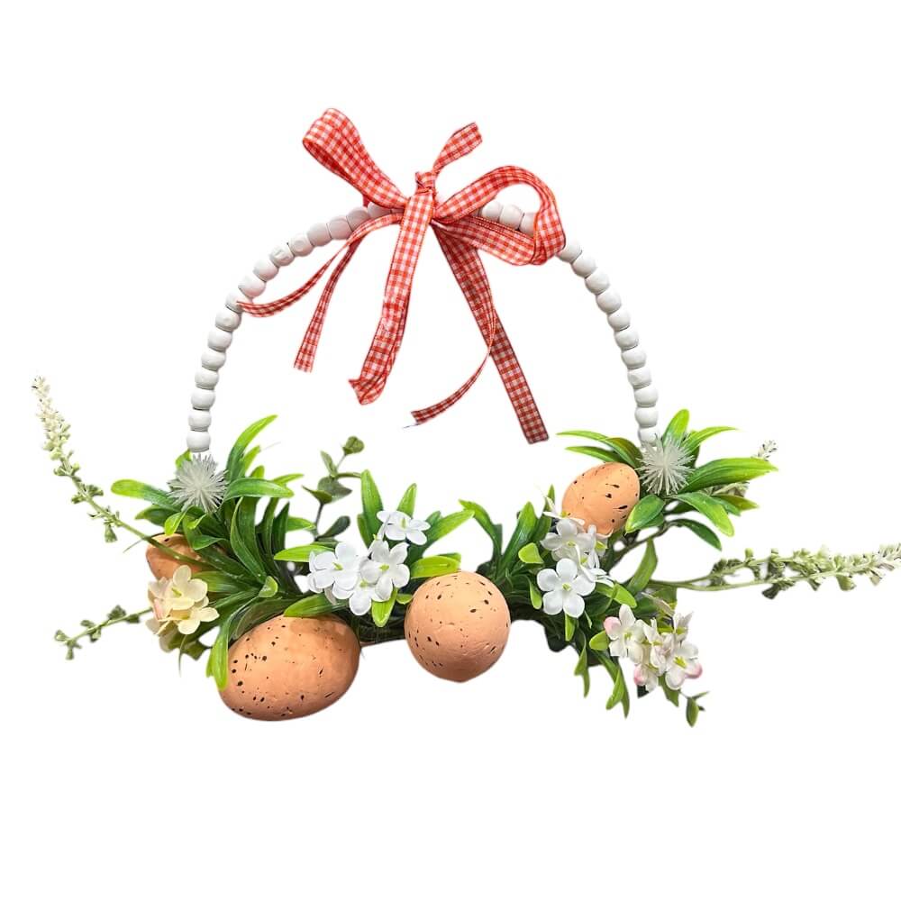 Uskrsni vijenac elegantna je i dekorativna viseća dekoracija koja će već pri samom ulasku u dom stvoriti topao i blagdanski dojam. Ovaj prekrasan vijenac savršen je izbor za sve koji žele unijeti proljetni ugođaj i vedrinu u svoj prostor.